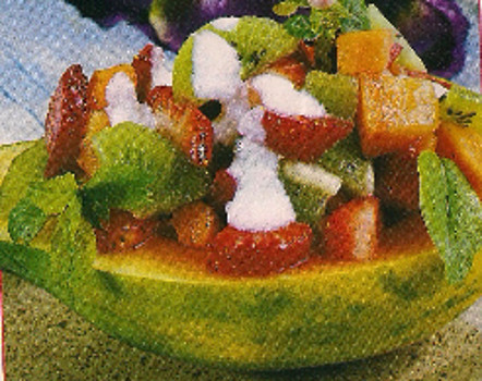 salada de frutas com papaiaUma receita rápida e de muito simples execução. A Receita de Salada de Fruta com Papaia, é baseada em fruta fresca e, possui um alto valor nutricional, é rica em vitaminas, sais minerais e fibras.