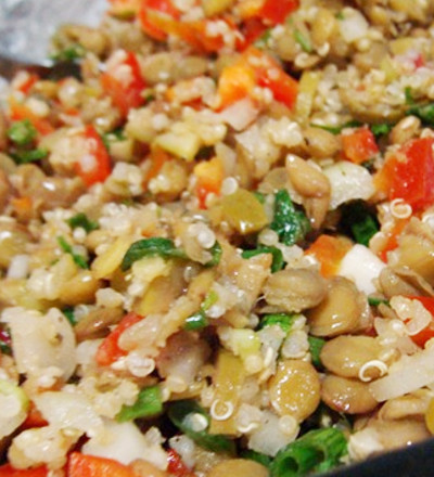 - Finalize, temperando com sal e pimenta a gosto. Se considerar necessário, acrescente mais azeite. Mexa muito bem, todos os ingredientes.